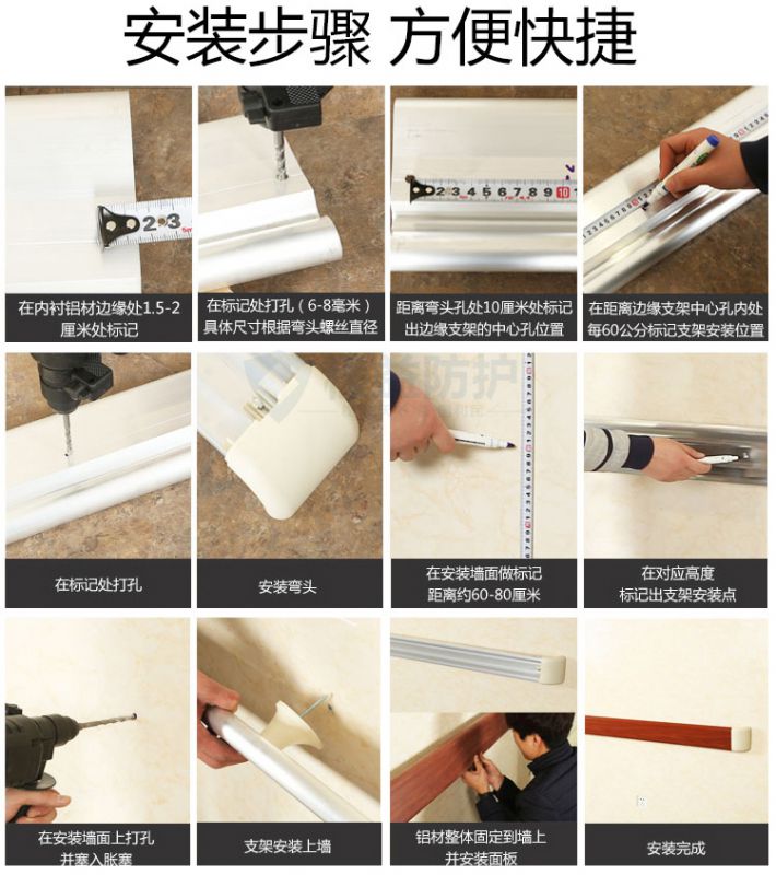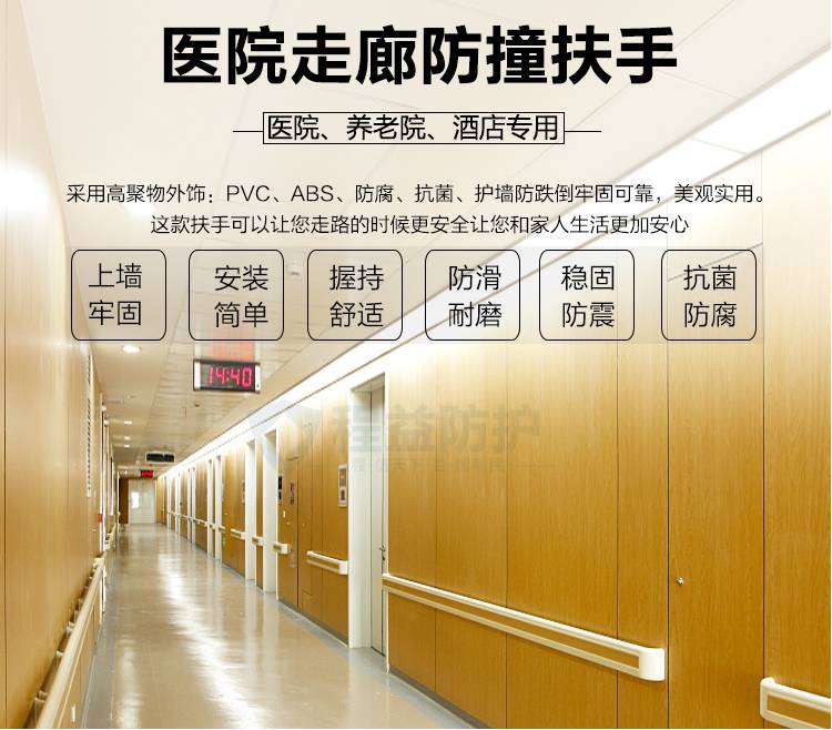 产品详情:防撞扶手是养老院,福利院,诊所和其他公共场所的常见防坠产品。当人们下楼梯或有走动难于的人下楼时,防撞扶手可以起到一定的缓冲效用,从而起到平稳效用。